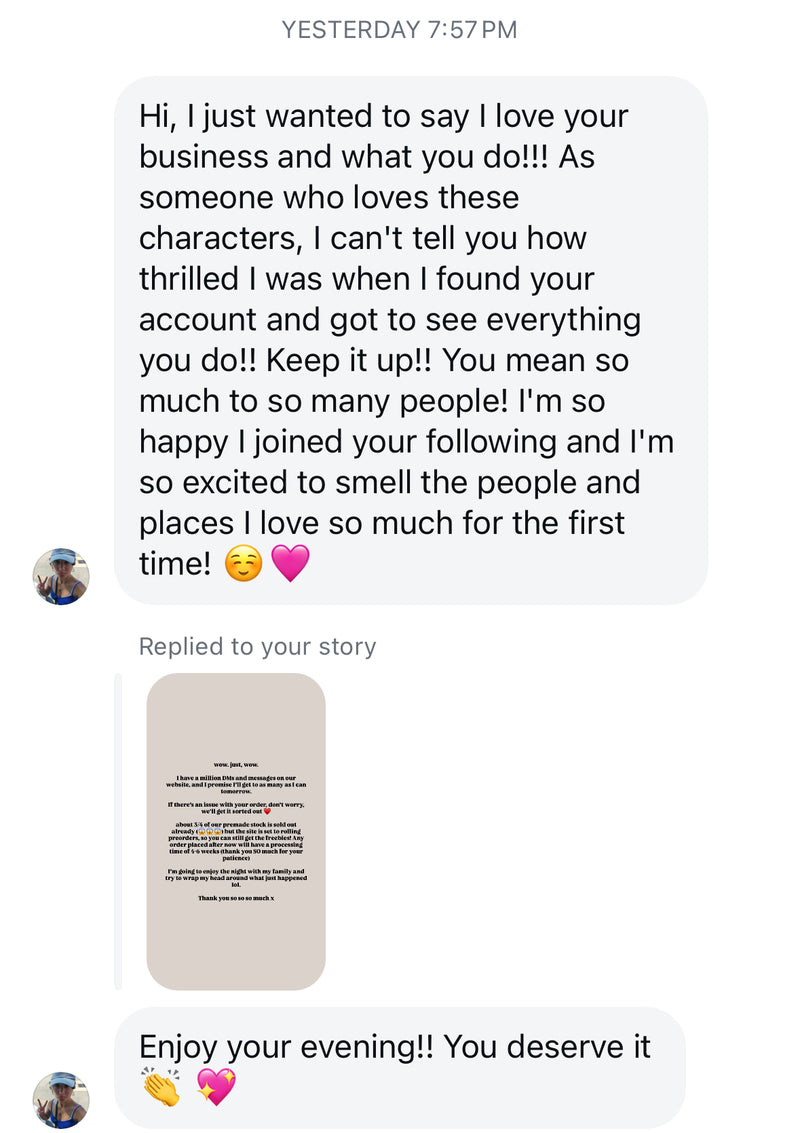 Truly a must buy! The smell is INCREDIBLE and truly brings me so much joy to connect with my favorite characters. The customer service is also top tier - Sierra helped me with all of my shipping complications (even while her shop was on vacation!). I can’t wait to buy from this shop again! 10000/10 ⭐️
